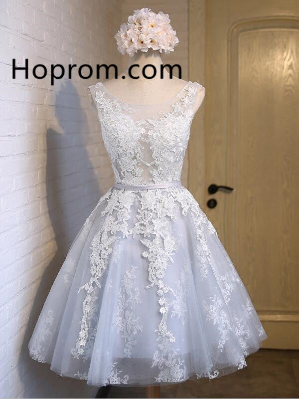 Baby Blue Applique Homecoming Dress, Chiffon Strapless Homecoming Dress