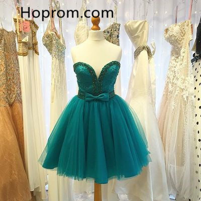Green V Neck Tulle Homecoming Dress, Bowknot Homecoming Dress