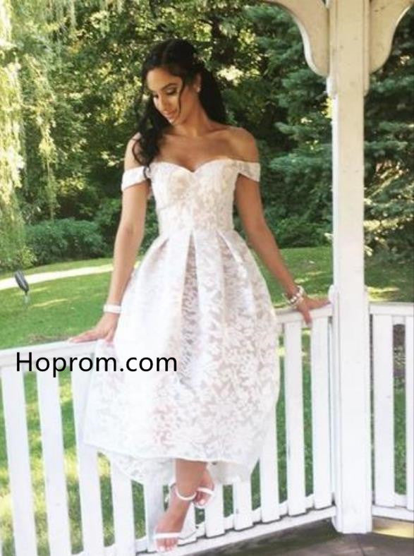 High Low White Lace Off the shoulder Homecoming Dress Bridesmaid Dress
