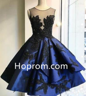 Navy Blue Appliques Homecoming Dress, Sexy Homecoming Dress