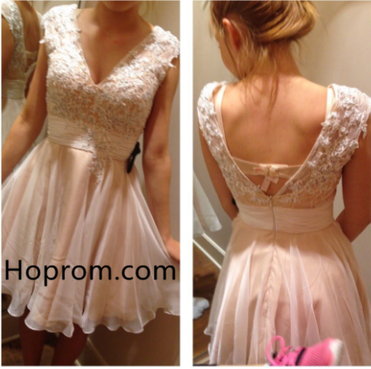 Pink Open Back Homecoming Dress, Lace Chiffon Homecoming Dress