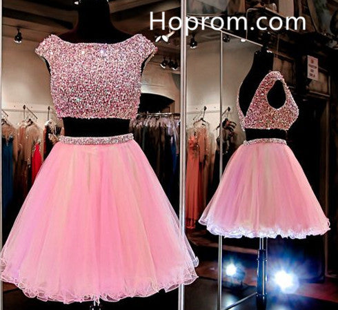 Pink Two Pieces Homecoming Dress, Beadings Chiffon Homecoming Dress