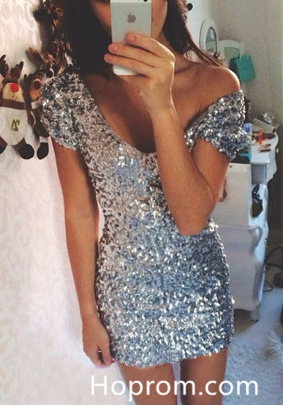 Sequins Deep V Neck Homecoming Dress,Sexy Short Homecoming Dress