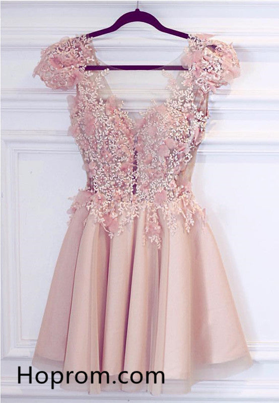 Appliques Homecoming Dress, Cute Pink Short Prom Dress