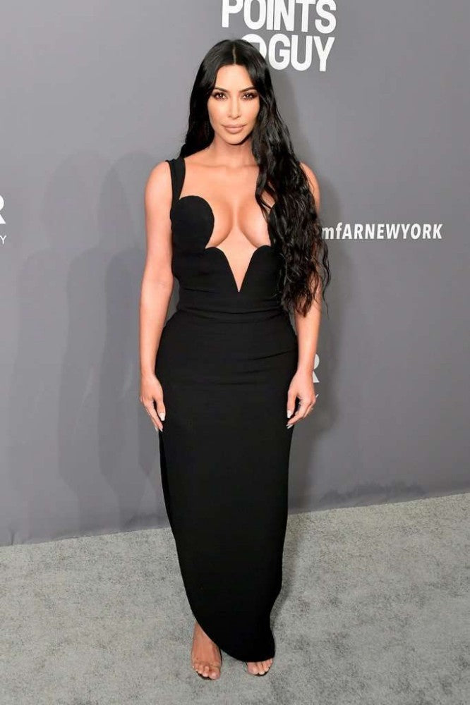 Black Kim Kardashian (Kim K) Low V Neck Dress Slit Prom Celebrity Evening Dress amfAR New York Gala