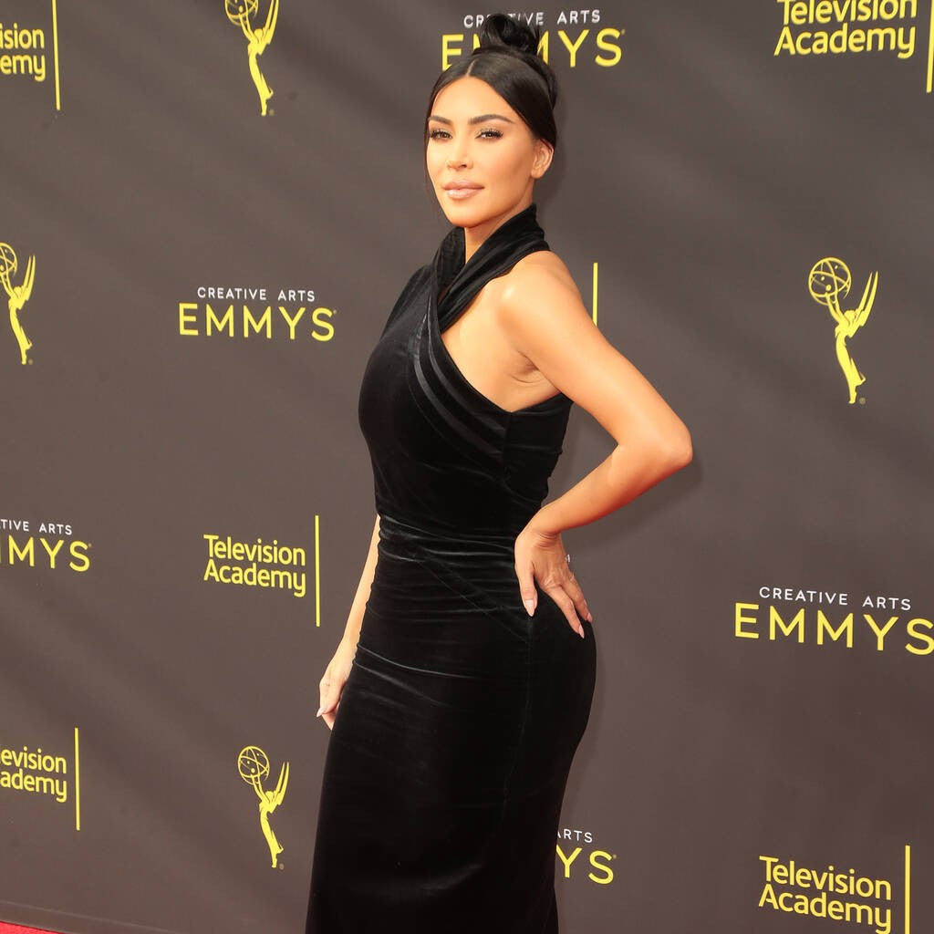 Black Kim Kardashian (Kim K) Velvet Asymmetrical Sheath Dress High Neck Prom Red Carpet Dress Emmys