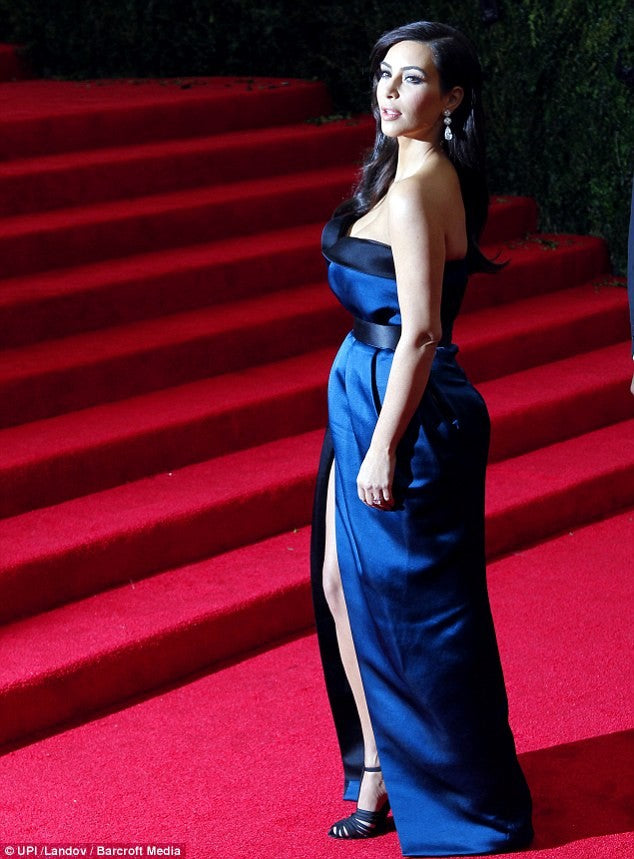 Blue Black Kim Kardashian Strapless Slit Dress Satin Prom Red Carpet Formal Dress Met Gala