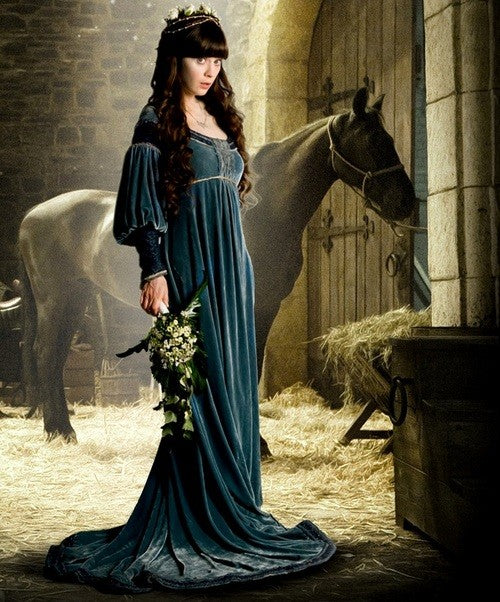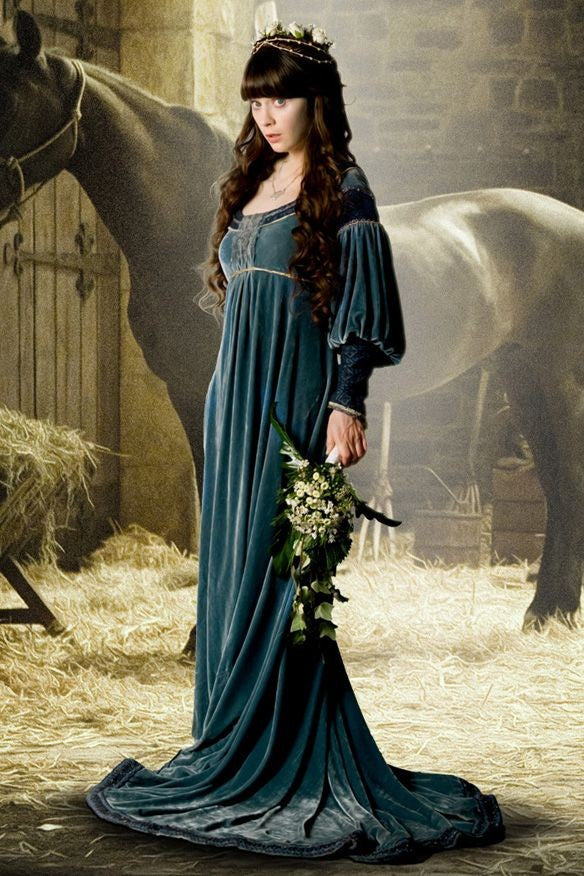 Blue Zooey Deschanel Velvet Dress Long Sleeve Prom Dress