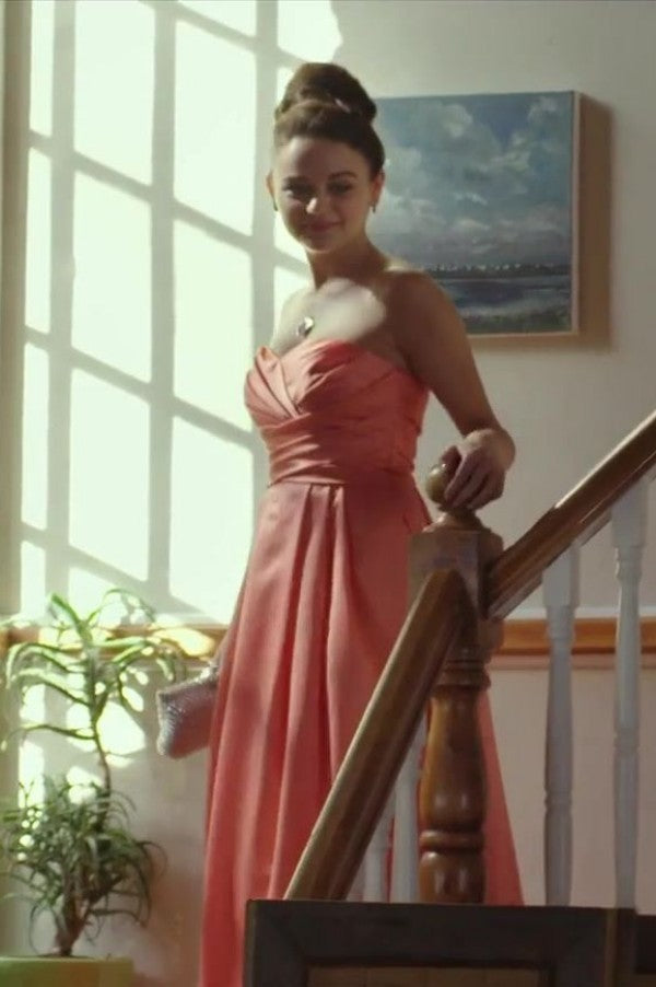 Joey King Pink Dress The Kissing Booth Satin Prom Formal Dress