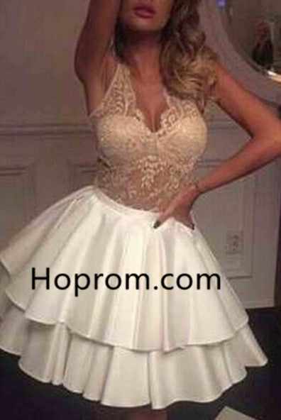 Lace Homecoming Dress, Sexy V-neck Short Prom Dresses