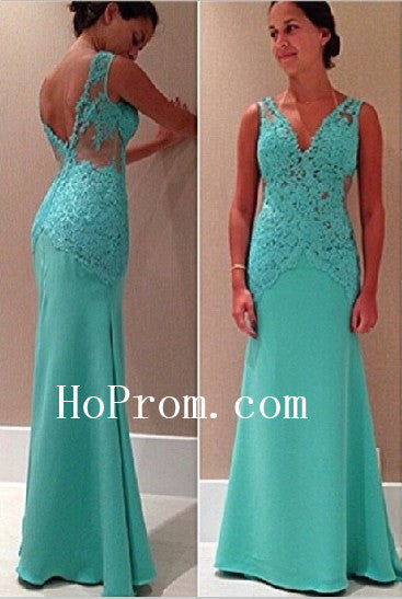 Mint Applique Prom Dresses,Straps Prom Dress,Sleeveless Evening Dress
