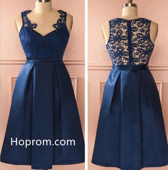 V-neck Lace Navy Blue Homecoming Dress, Short Prom Dresses