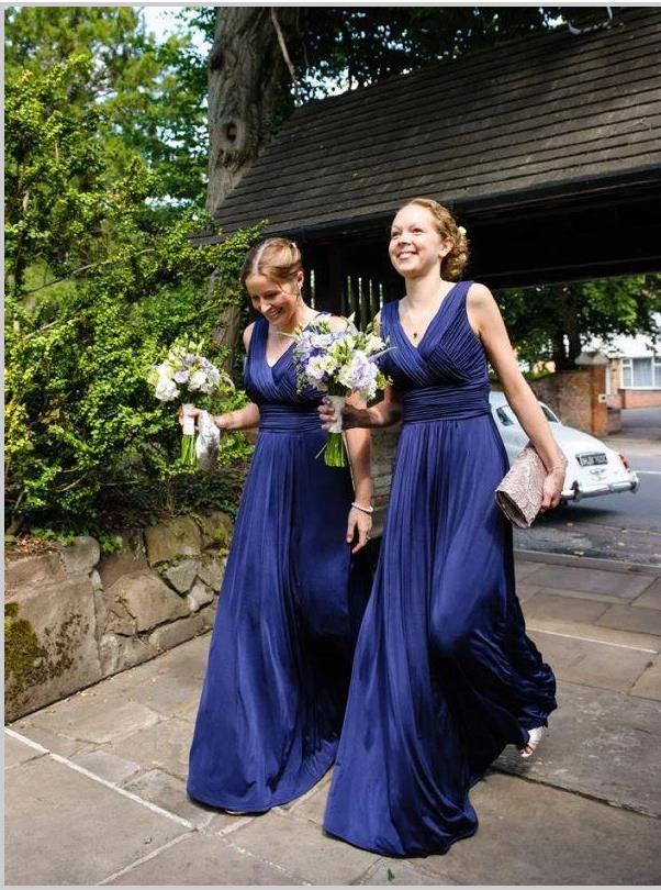 Princess Chiffon V-neck Pleats Bridesmaid Dresses Floor Length